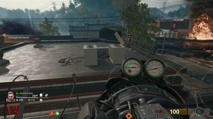 If you’re playing solo, you might have to run around with a zombie or two in this small rooftop area, but be wary that once you’re firing the Jet Gun – even if you’re not aiming at them – it’s likely this will kill the zombies, and progress to the next round.