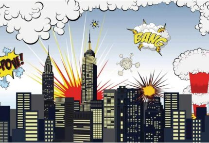Haoyiyi 10x8ft Superhero Super City Backdrop City Building Dark Blue Sky Boom Cloud Background Photography Artistic Portrait Activity Decoration Banner Photo Booth Prop Video Drape Wall