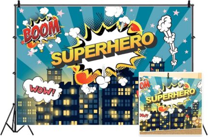 Haoyiyi 10x8ft Super City Backdrops for Photography Cartoon Superhero Modern Cityscape Background Kids Child Newborn Birthday Party Supplies Baby Shower Event Banner Photo Booth Props