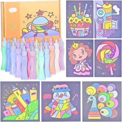 TOPTIME Sand Art Kits for Kids, 24 Bottles Colored Sand 41 Sheets Sand Art Painting Cards, Sand Art Kit Kids’ Sand Art Kits Colored Sand Art Kit for Children Art Toy for Boys Girls DIY Arts and Crafts