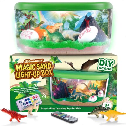 Dinosaur Terrarium Kit Gifts for Kids – DIY Night Light Up with Remote – Dinosaur Toys Arts and Crafts for Boys Fun Christmas Birthday Gifts for Ages 4 5 6 7 8 9 10 + Year Old Easter Dino Science Kits
