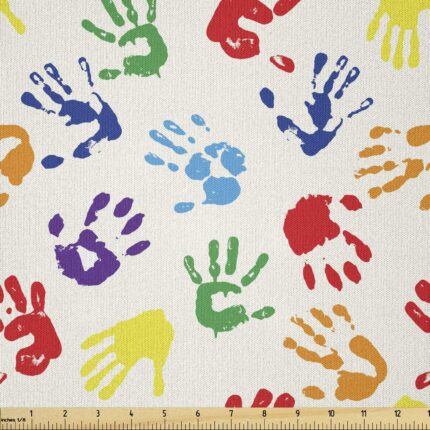 Lunarable Paint Fabric by The Yard, Colorful Hand Shapes Fingerprints Rainbow Palette Abstract Activity Pattern, Microfiber Fabric for Arts and Crafts Textiles & Decor, 1 Yard, Red Blue