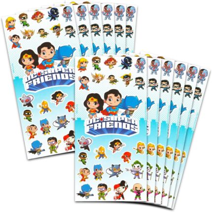 DC Super Friends Party Favors for Boys & Girls Bundle ~ 12 Pack Justice League Sticker Sheets for Kids Birthday Party Goodie Bags | Superman Party Supplies Set