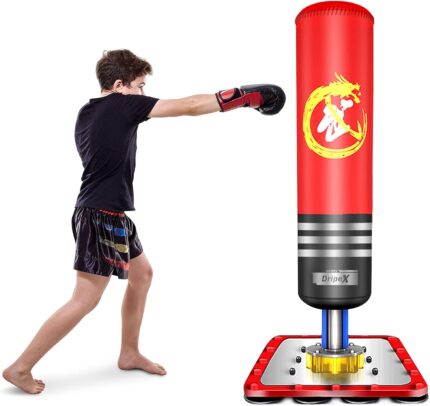 Dripex Freestanding Punching Bag – Kids Heavy Boxing Bag with Suction Cup Steel Base, 47” Standing Kickboxing Bags Children Kick Punch Bag, Great for Home Gym Exercise