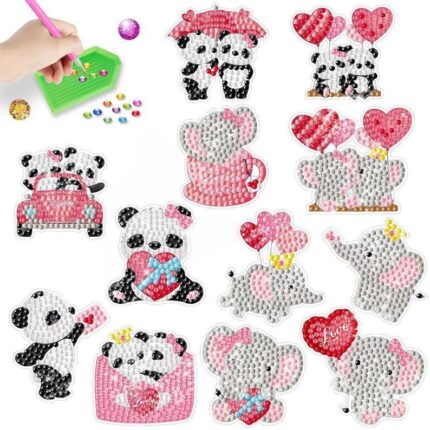 MEGZIHXN Kawaii Diamond Art Stickers,Panda Love Panda Panda Couple Elephant Couple Love Elephant Balloon Crown Elephant Kids Gem Diamond Art Stickers – Gem Painting Diamond Art Kits for Kids