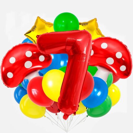 7 Balloon Number Red Blue Green Yellow Balloon Cartoon Mushroom Decorations Star Balloons for Birthday, Carnival, Party Activities, Cartoon Video Game Theme Party Supplies