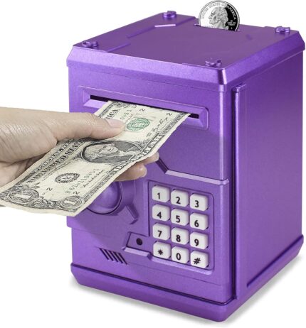Electronic Money Bank for Kids, Elctronic Password Security Piggy Bank Mini ATM Cash Coin Saving Box Smart Voice, Toy Gifts Birthday Gift for Children (Purple)