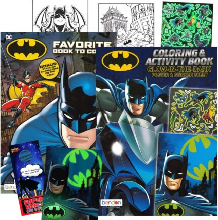 Batman Coloring Set with Glow in The Dark Posters, Stickers – Batman Activity Book Bundle for Boys 2 Coloring Books | Superhero Coloring for Kids