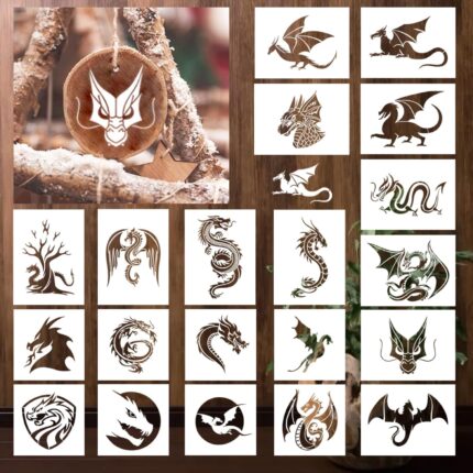 20 PCS Painting Stencils for Crafts Reusable Dragon Stencils Animal Stencils for Painting on Walls Wood Canvas Fabric Decorations DIY Projects
