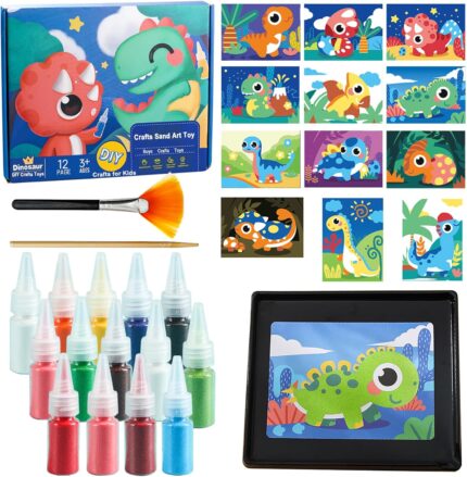 TNOONE Sand Art Kits for Kids,Dinosaur Crafts for Girls Boys Ages 6-8,DIY Creative Learning Toys,Ideal Party Gifts