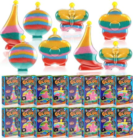 Wettarn 24 Sets Create Your Own Sand Art and Crafts DIY Kits Glitter Sand Art Glow in The Dark Include Colored Sand, Sand Bottles with Funnels and Sticks for Activities Supplies