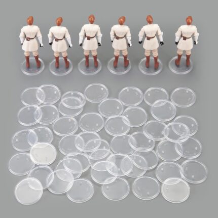 SIXPOINTS 70 Pieces Clear Round Figure Display Stand Base Compatible with 3.75” Vintage Star Wars Movie Action Figures toy, 37.5mm Wide Disc,3.6mm Peg Doll Model Support Stand…