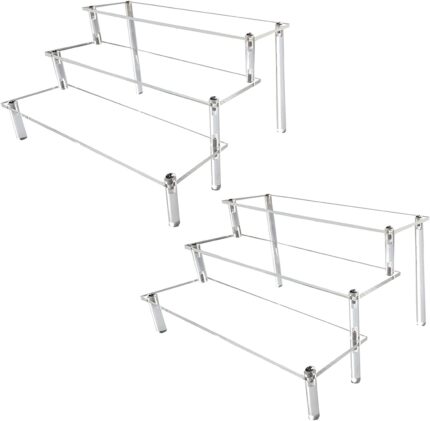 Acrylic Riser,2 Pcs Clear Display Risers Stand Cologne Organizer Acrylic Shelves 3 Tier Shelf for Amiibo Funko POP Figures Cupcake Food Desserts Holder Perfume Collection Cosmetic Product