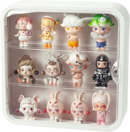 Clear Display Case for Figures, Wall Mounted Acrylic Storage Box, Dust Proof Display Cabinet Organizer for Mini Pop Mart Action Figures Collectibles (White)
