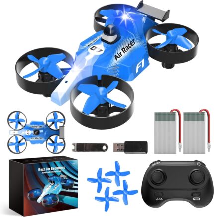 Drones for Kids, Mini Drone for Beginners, Small Indoor RC Quadcopter RC drone toy for Adults with Air-Ground Dual Mode Switch, Headless Mode, 3D Flip, Auto Hovering and 2 Batteries, Toy Gift for Boys and Girls, Blue