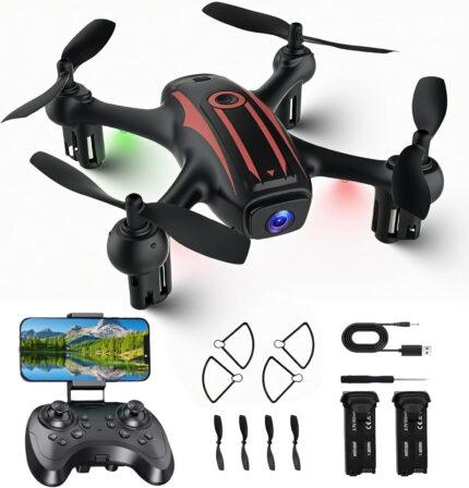 Drones for Kids with Camera – Remote Control Helicopter Toys Gifts for Boys Girls, 1080P HD FPV Mini Drone for Adults, RC Quadcopter with One Key Start/Land, Altitude Hold, Gesture Selfie, 2 Batteries