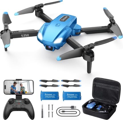 S350 Mini Drone with Camera for Kids, RC Helicopter Toys Gifts for Boys Girls, FPV Remote Control Drones with 1080P Live Video HD Camera, Carry Case, 3-Speed, Altitude Hold, 2 Batteries, Blue