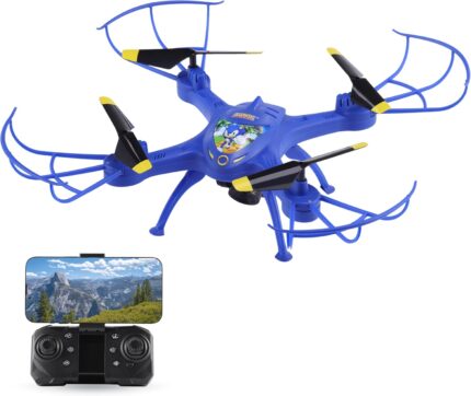 Sonic The Hedgehog Sky Racer Drone – WiFi Camera, 3D Flips, Variable Speed Settings, Kid’s Toy Drone with 10 Min Flight, Auto Hover, and Remote Controler Included