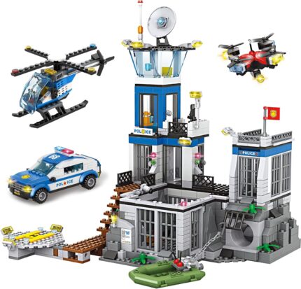 City Police Prison Island Building Blocks Set, Police Station Building Toy Kit with Police Car Drone Helicopter Boats, Best Preschool Toys Gift for Kids, Boys, and Girls Aged 6+ (946 Pieces)
