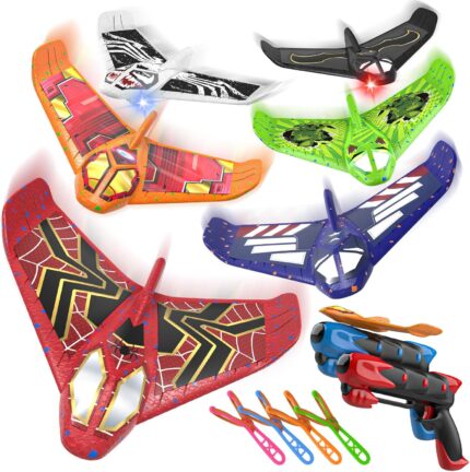 Fuwidvia 6 Pack Airplane Launcher Toys, LED Foam Airplane Toys for Kids, Outdoor Plane Flying Toys for Boys Girls Toys Age 3 4 5 6 7 8 9 10 11 12 Year Old boy Birthday Gift Ideas