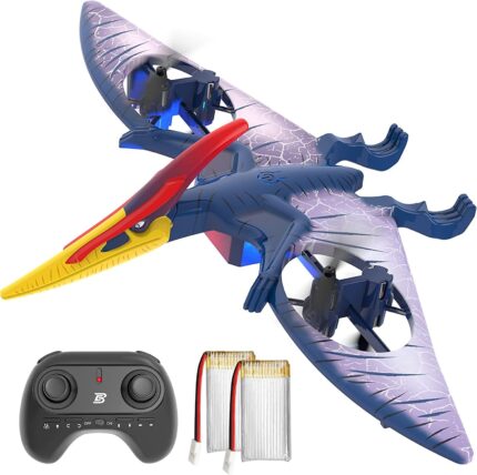 Pterosaur Flying Remote Control Dinosaur for Kids Boys Girls – Indoor Quadcopter Drone Dinosaur with Altitude Hold, Headless Mode, LED Light – Gift for Kids – Perfect Birthday/Christmas Gift – One Key Start, Speed Adjustment