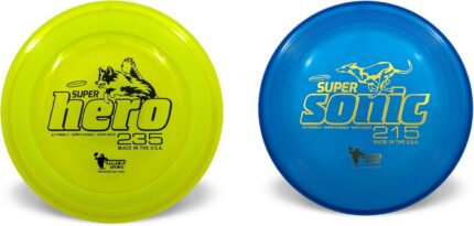 Superhero 235 and Super Sonic 215 K9 Candy Plastic Dog Frisbee, Outdoor Dog Toy and Pet Frisbee, Puncture Resistant Dog Flying Disc Pack of 2
