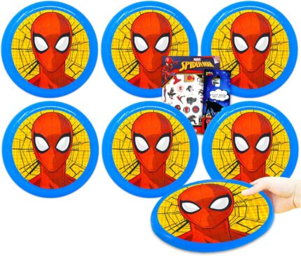 Spiderman Party Favors Set for Kids – Bundle with 6 Spiderman Flying Disc Toys Plus Tattoos, More for Spiderman Birthday Party | Spiderman Goodie Bag Filler