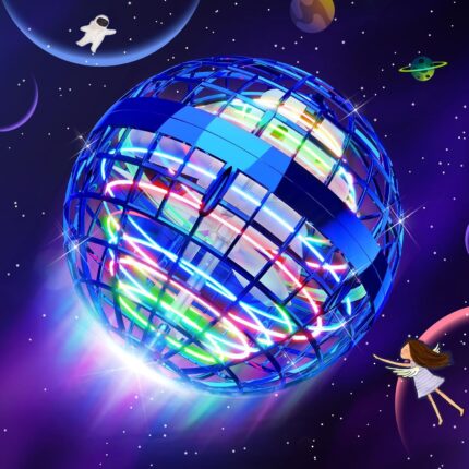 TOMZON 2024 UFO Flying Orb Ball, Galaxy Boomerang Ball with RGB LED Light Mini Hand Drone, Hand Controll Fidget Spinner Hover Orb Ball, Spinning Kids Toys Gift Boys Girls Quick USB Charge(Blue)