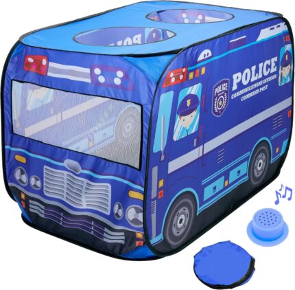 Police Car Pop Up Play Tent with Sound Button Super Hero Playhouse for Interactive Fun Play Toys & Gifts for Kids Toddlers Boys Girls Pop Up Car Tent Foldable Quick Setup – Indoor & Outdoor
