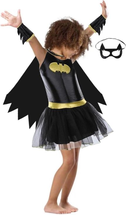 Bat Costume Bat Mask Girls Super Hero Bat Cloak Superhero Helmet Black Cape Halloween Cosplay Outfit Full Set Suit