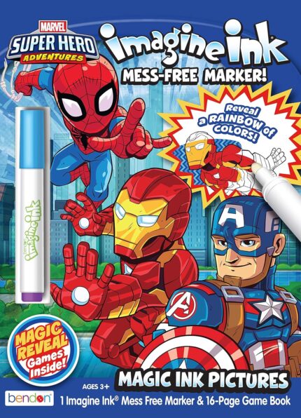 Bendon Marvel Super Hero Adventures 24 Page Imagine Ink Magic Ink Coloring Book with Mess Free Marker 45646