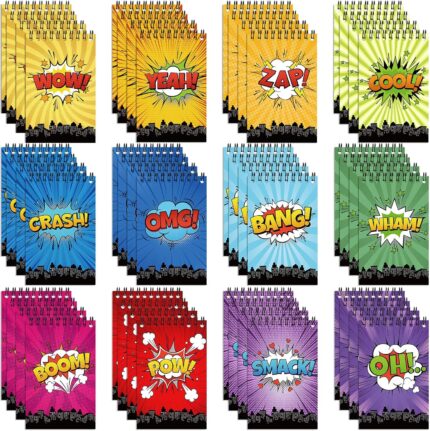 48 Pcs Mini Hero Notebooks Mini Comic Hero Notebooks for Kids Party Favors 3.5 x 5.5 Inch Mini Spiral Notebook Pocket Notepad for Classroom School Rewards Birthday Party Office Supplies