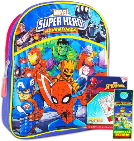 Marvel Super Hero Adventures Mini Backpack – 3 Pc Bundle With 11″ Avengers Superhero School Bag For Boys, Kids, Spiderman Coloring Pack And More | Marvel School Supplies