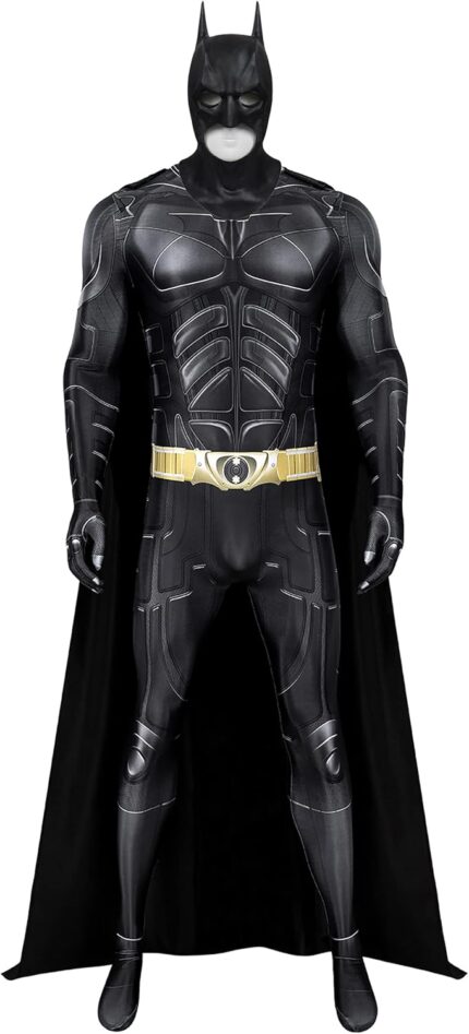 Adult Bat Super Hero Costume Bat Mask Men Knight Cosplay Jumpsuit Cape Outfit with Bat Cowl for Halloween Party