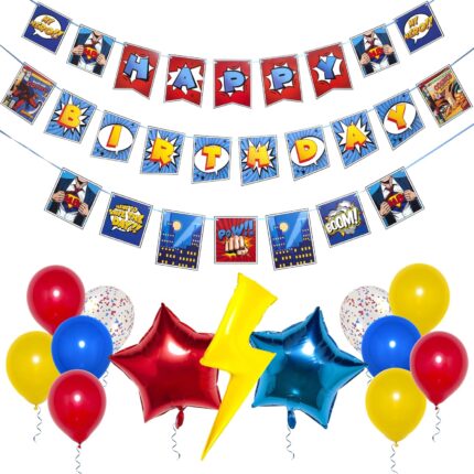 Pirese Superhero Birthday Decorations, Superhero Birthday Banner, Super Hero Party Decorations | Superhero Party Supplies | Super Hero Birthday Decorations | Comic Book Birthday Party Supplies for Kids