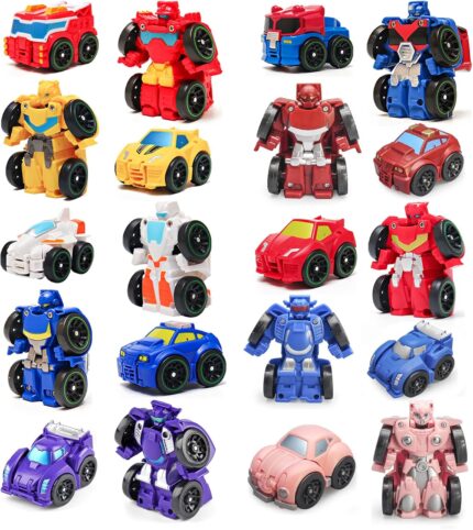 ONEST 10 Pieces Mini Robots Car Toys Toddler Small Hero Action Figures Push Go Rescue Vehicle Playset Boys Little Car Bots for Kids Christmas Birthday Party Gift