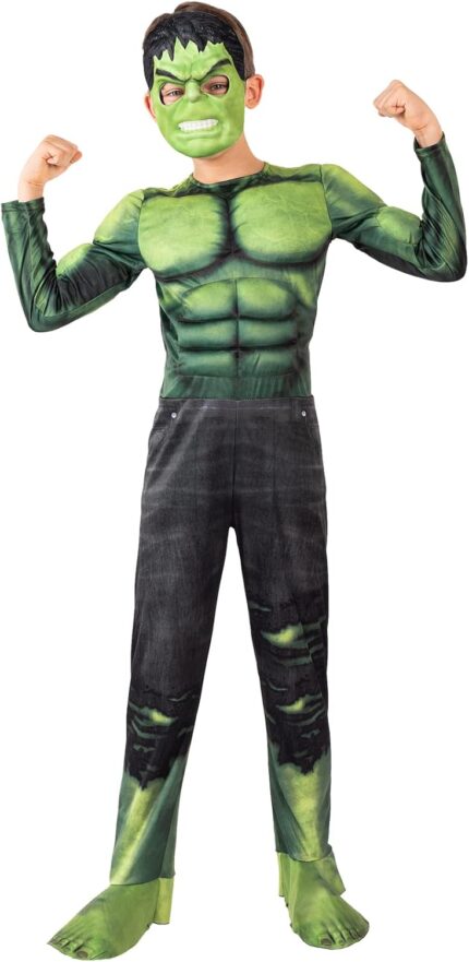 Price: (as of – Details) ◍ Super Hero Muscle Costume Kids Halloween Mask Green Jumpsuit Full Sets ◍ Attentions ◎