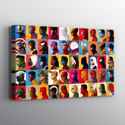 Super Hero Characters Superhero Heads Canvas Wall Art Print. High Quality – Various Sizes (24in x 18in Gallery Wrapped)