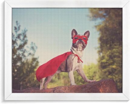 Super Hero French Bulldog Decorative Diamond Painting Kits with Frame 5D DIY Full Drill Rhinestone Art Pictures Home Decor White Wood 50 * 40cm