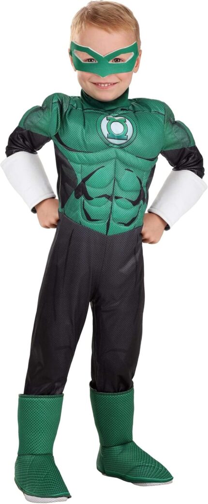 Toddler’s Deluxe Green Lantern Costume, Green Superhero Suit, Mask & Accessories for Hero Villain Cosplay Party