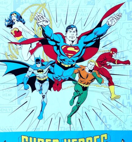 to The Rescue Hero Captain Super Woman & Man Aqua Fabric Cotton Panel (Great for Quilting, Sewing, Craft Projects, Wall Hangings, and More) 35″ X 44″