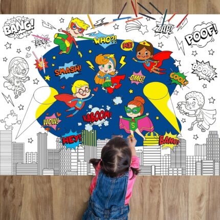 ZOIIWA Hero Themed Coloring Poster for Kids Giant Coloring Poster Large Hero Coloring Tablecloth Jumbo Coloring Books for Kids Gift Classroom Home Birthday Party Supplies Favor 31.4 X 43.3 Inch