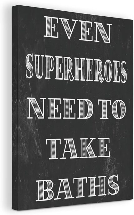 Even Superheroes Need To Take Baths Canvas Wall Art Prints Artwork Signs Framed for Farmhouse Rustic Home Hotel Gym Kids Bathroom Decor,11 X 14 inch,Gift for Men Kids Boys