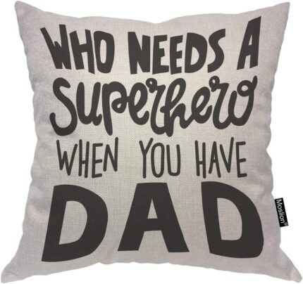 Father’s Day Quote Pillow Case Who Needs A Superhero When You Have Dad Throw Pillow Cover Cotton Linen for Home Sofa Decorative Square Cushion 18×18 Inch