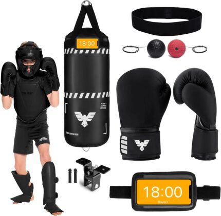 Elite Sports 4ft Boxing Bag, Punching Bag Set with 12oz Gloves, Hand Wraps, Jump Rope, Reflex Ball & Phone Holder – for Boxing, MMA, Kickboxing, Martial Arts, Home Gym (Unfilled)