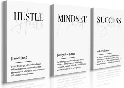 GUBIYU Hustle Mindset Success Wall Art Set of 3 Framed Canvas Black and White Motiviational Wall Art Home Office Wall Decor Inspirational Positive Quotes Posters Success Entrepreneur Gifts 12″x16″