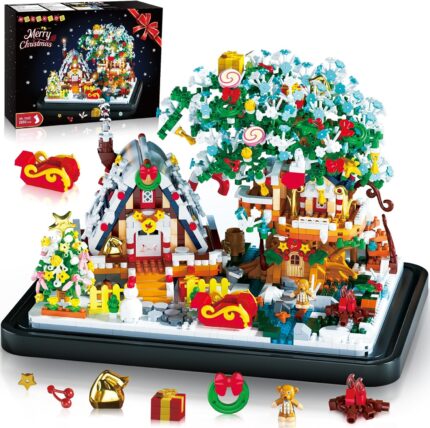 HOGOKIDS Christmas Gingerbread House Building Sets with LED Lights – 2024 Christmas House Micro Buliding Blocks, Christmas Tree House Home Office Decor Display, Xmas Gift for Boy Girl Adult (2055pcs)