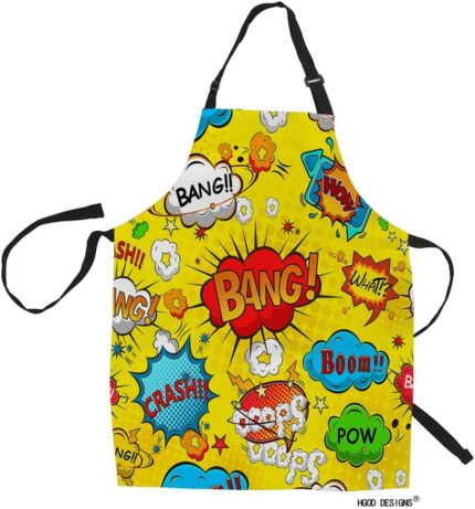 Price: (as of – Details) HGOD DESIGNS Comic Kitchen Apron,Comic Speech Bubbles Superhero Art Pattern Kitchen Aprons For Women Men