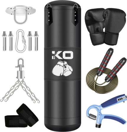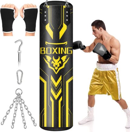 Price: (as of – Details) Hanging Punching Bag for Adults, 4ft PU Heavy Unfilled Boxing Bag Set with 10OZ Boxing