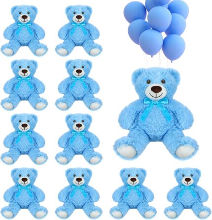 Lenwen 10 Pcs 14 Inch Plush Bear Stuffed Animal Toys Soft, Wedding Gift Cute for Baby Shower Birthday Home Decoration (Blue)